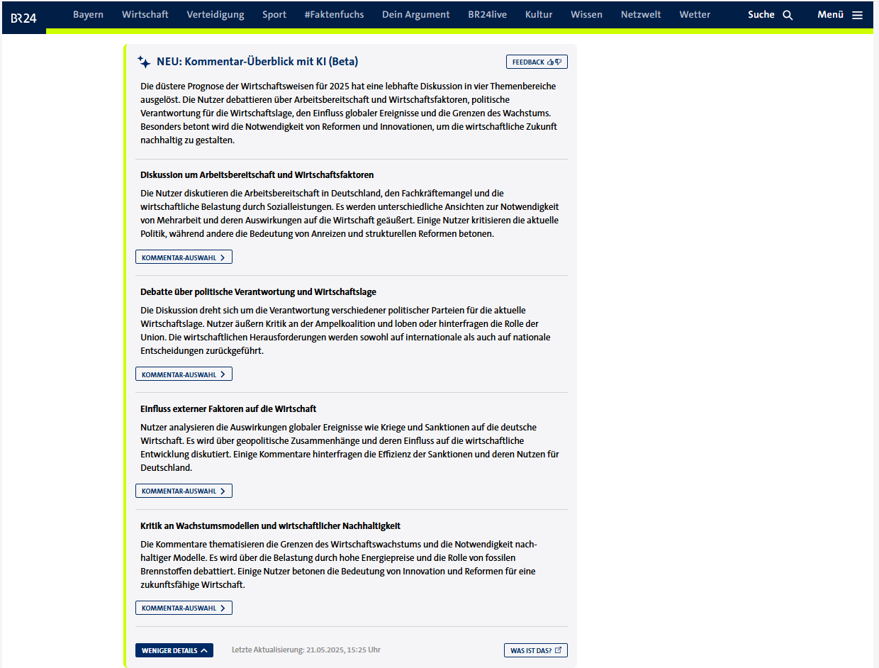 Bayerischer Rundfunk modtager dagligt over 3.000 kommentarer til deres mange artikler, og det betyder, at det kan være svært for brugerne at overskue, hvilke holdninger, der er på spil.