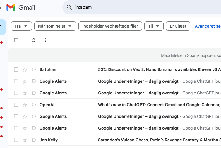 Googles sofistikerede spamfiltrering, som ellers ofte lader ægte spam glide uforhindret ned i min hellige indbakke, har analyseret sig frem til at deres egne mails må være spam.
