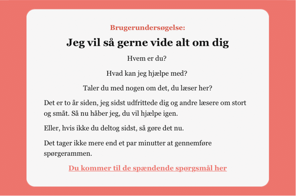 Jeg håber også, at du vil deltage i min brugerundersøgelse⬇️