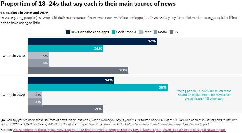 For ti år siden gik de yngste nyhedsbrugere (18-24 år) den direkte vej til nyhedsmedierne, når de ville vide, hvad der skete.